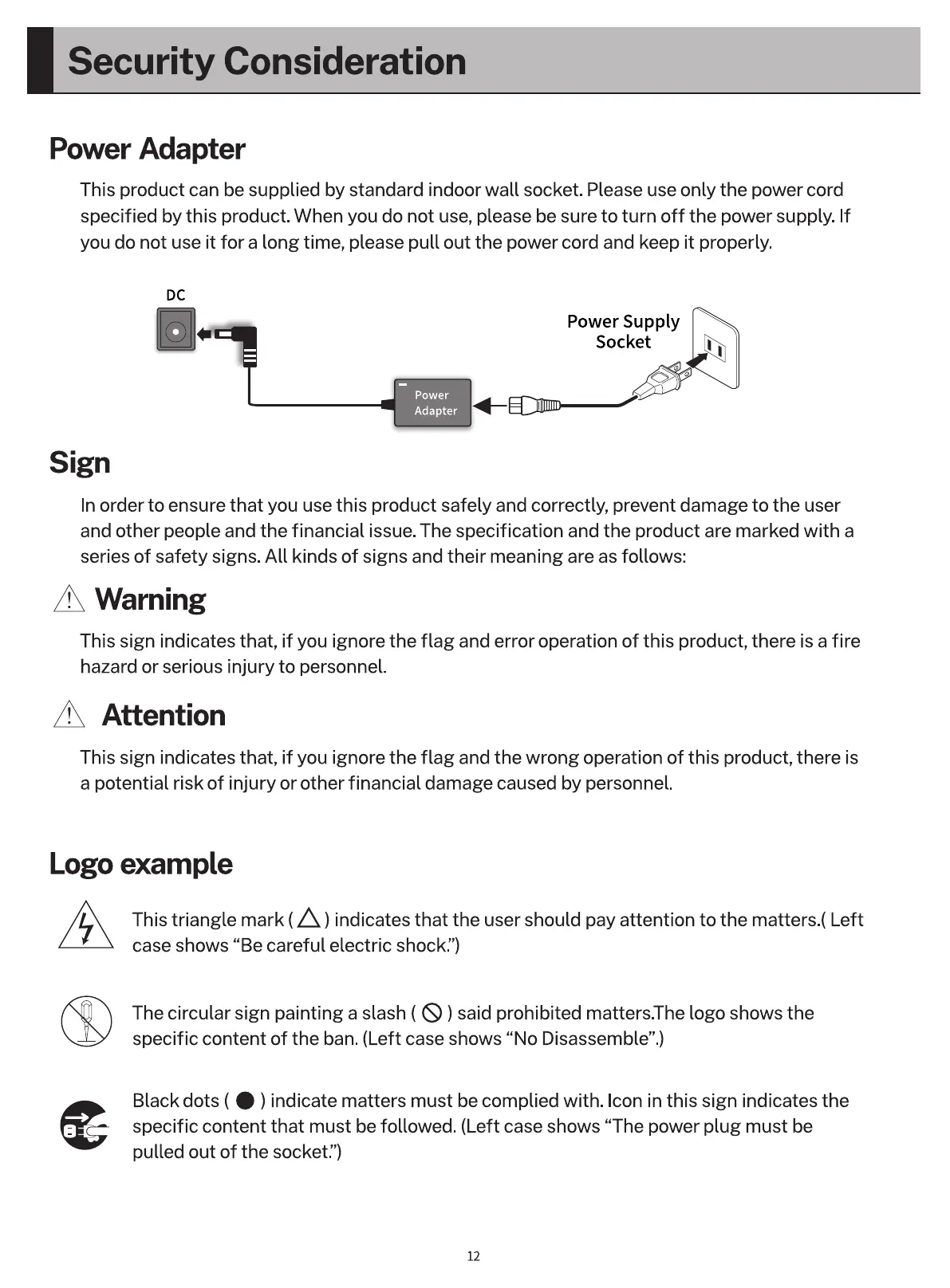 This sign indicates that, if you ignore the flag and the wrong operation of this product, there is