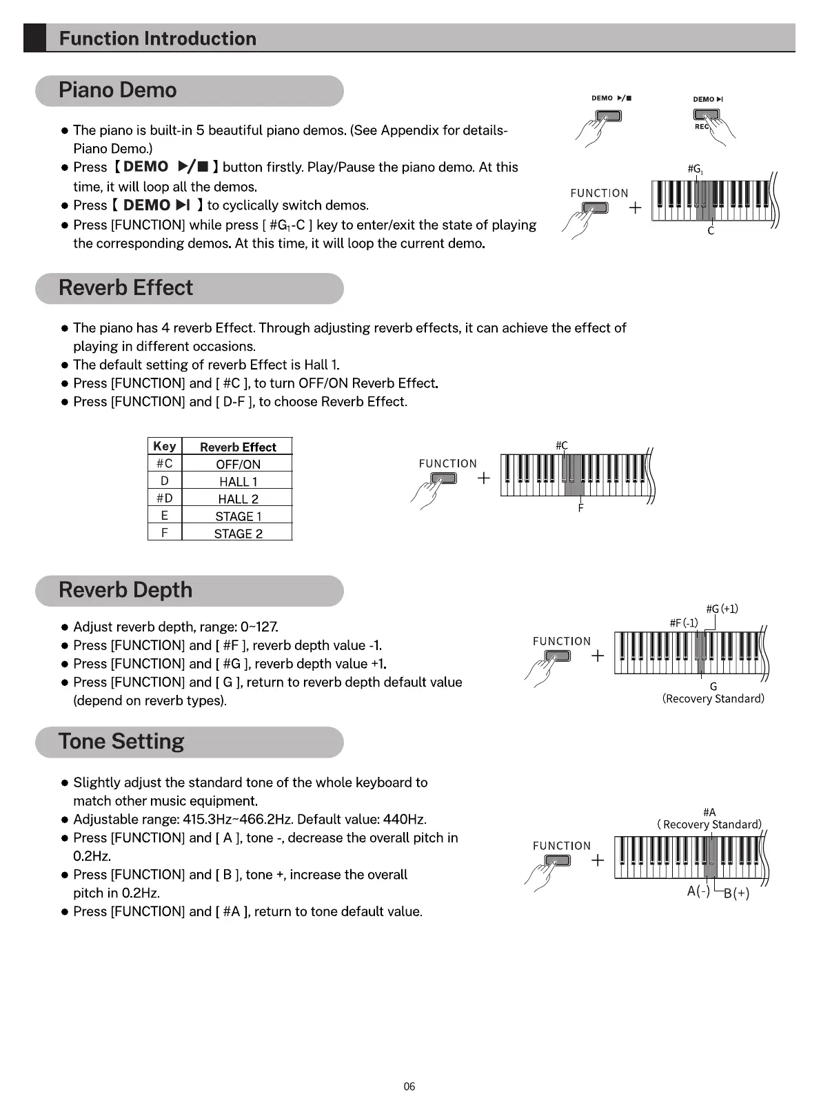 • Press [FUNCTION] and [ #A ], return to tone default value.