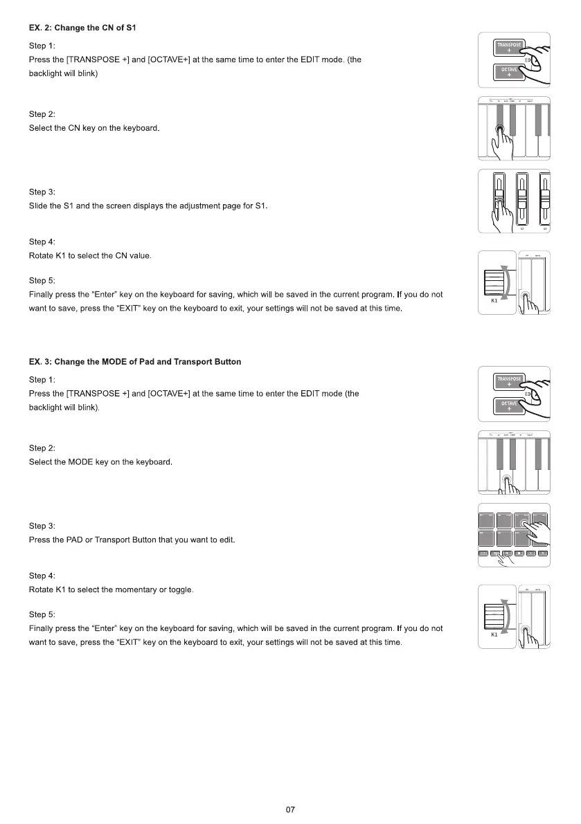 Press the [TRANSPOSE +1and [OCTAVE+] at the same time to enter the EDIT mode. (the