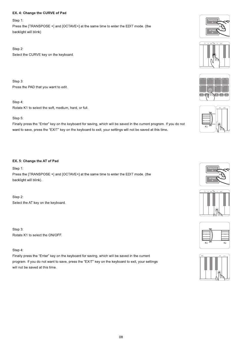 Press the [TRANSPOSE +1and [OCTAVE+] at the same time to enter the EDIT mode (the