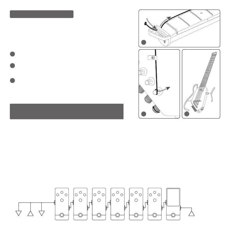 s'enroule sur la cheville depuis l'intérieur de la guitare.