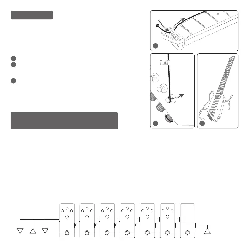 Innenseite der Gitarre her um die Stimmwirbel gewickelt wird.