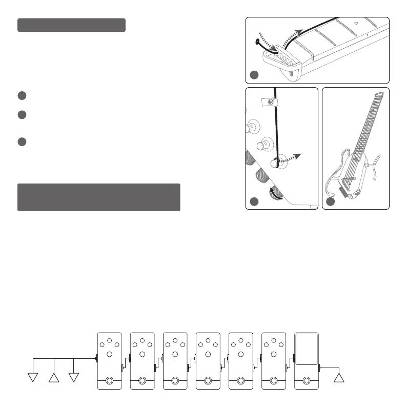 avvolga intorno al pirolo di accordatura dall'INTERNO della chitarra.