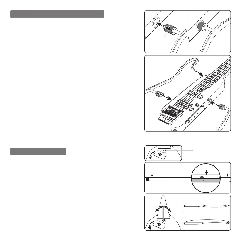 Gitarrenkorpus ein. Zum Schluss führen Sie die obere Stange ② vollständig in