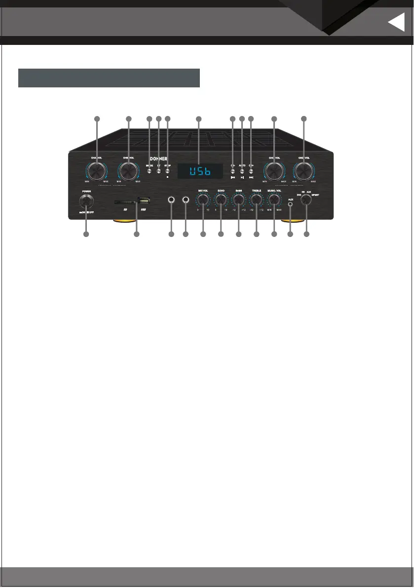 6. Echo Control: Rotate the knob to adjust the reverberation of the microphone.