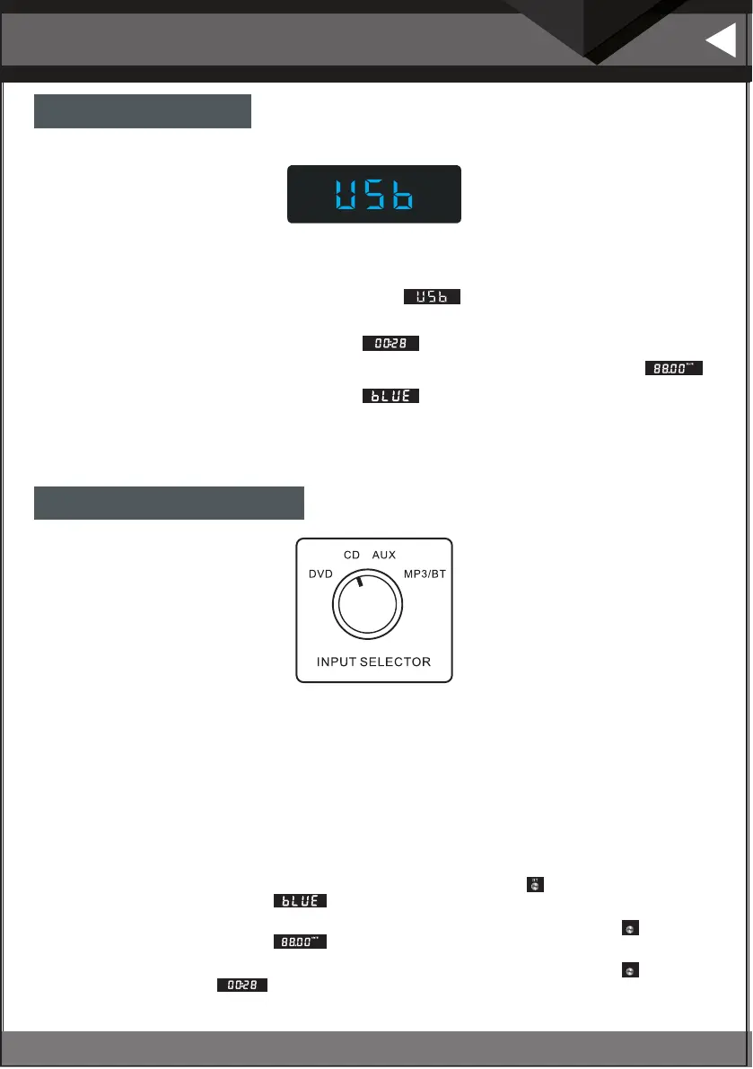 4th gear "MP3/BT" is BT/FM/USB/SD input, the display will show:
