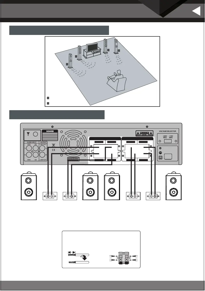 terminal of the speaker. If reversed, the sound will be unnatural and there will be no low-frequency.