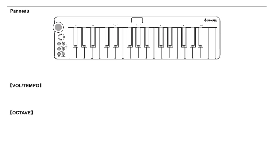 ● L'indicateur du bouton peut être déclenché lorsque l'octave est ajustée de haut en bas et il se réinitialise à l'état initial