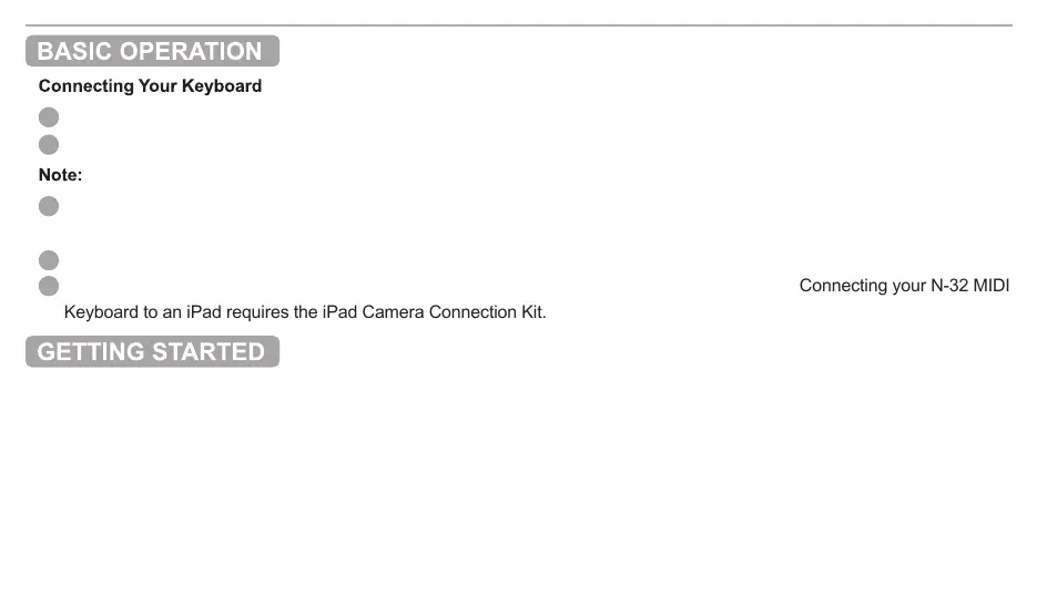 You can also use N-32 MIDI Keyboard with your iPad to control supported music creation apps. Connecting your N-32 MIDI