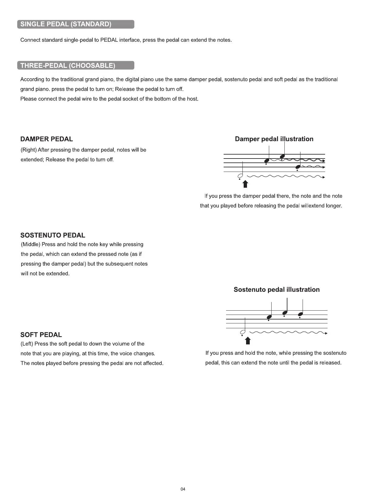 grand piano. press the pedal to turn on; Release the pedal to turn off.