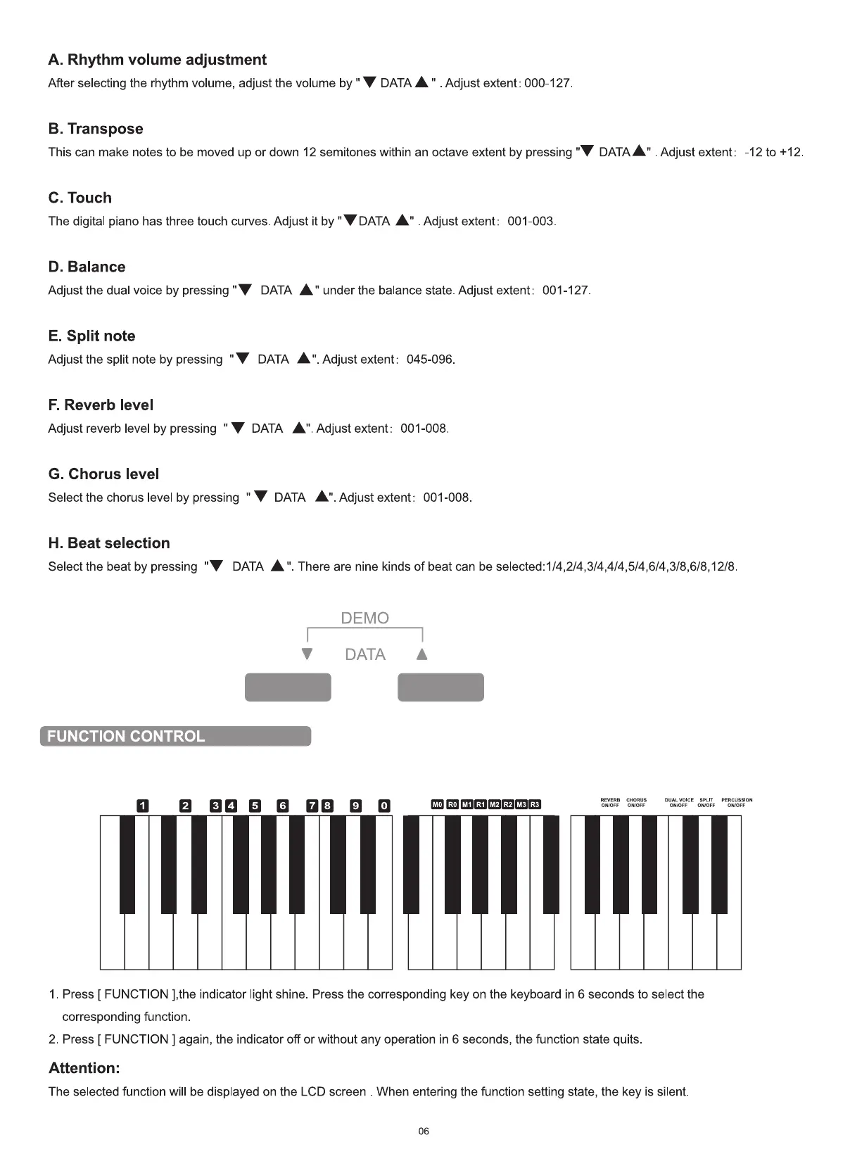 The digitalpianohasthreetouch curves.Adjustit by "V DATAA" Adjust extent: 001-003.