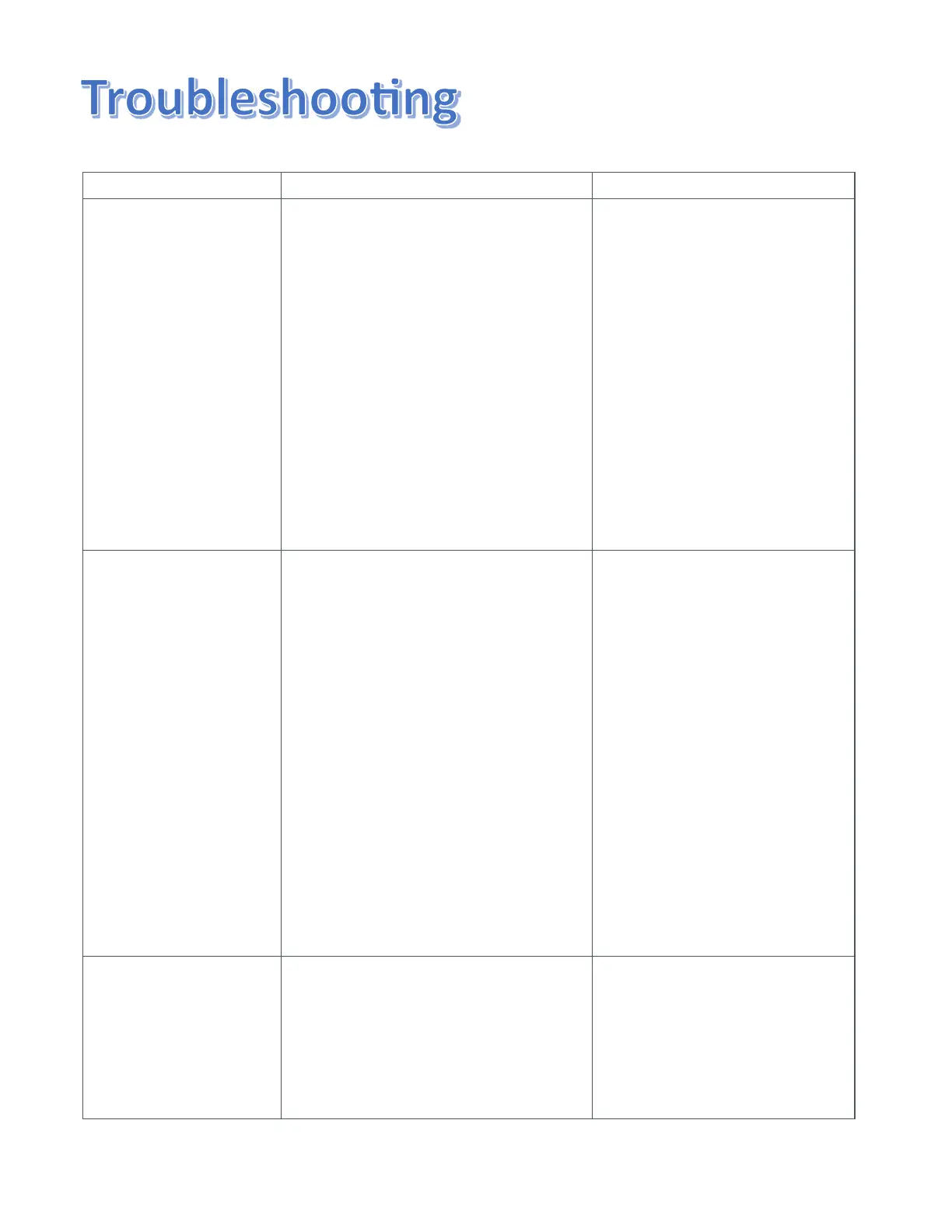 Problem Possible Cause Solution