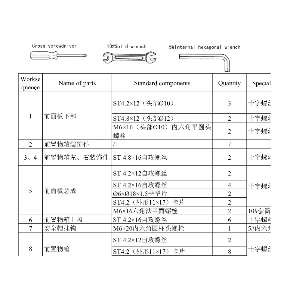 Doohan iTank - 3.1.2 Procedure of Dismantling and Switching the Covering Pieces and the Tools Required