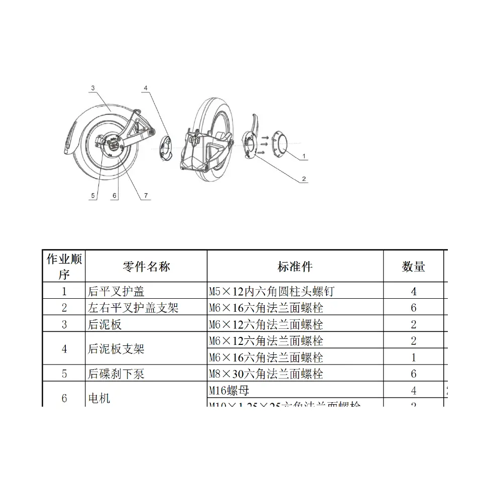Doohan iTank - 3.4 The Rear Wheel and Rear Disc Brake System; 3.4.1 The Rear Wheel and Back Disc Brake System Map; 3.4.2 Tools Needed to Disassemble and Switch the Rear Wheel, Rear Disc Brake System and the Order of Disassembling and Switching