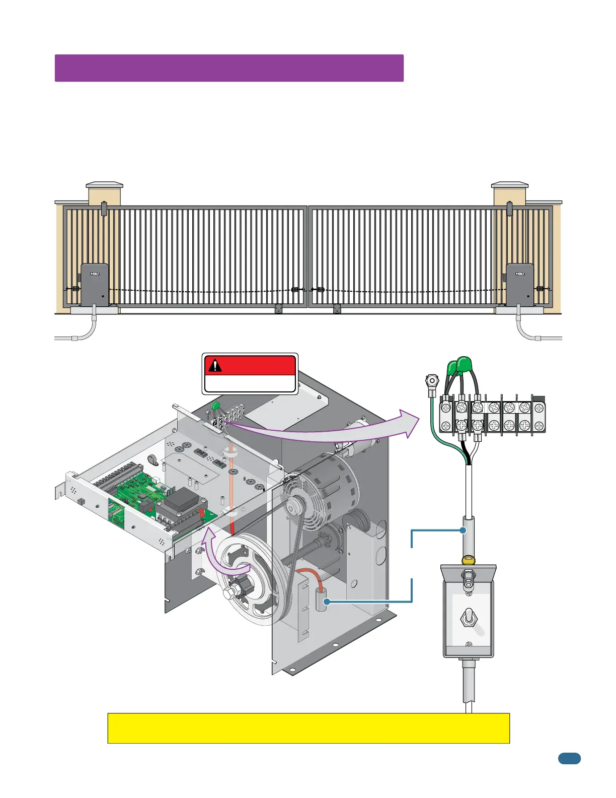 • Route incoming AC power wire through the high voltage conduit and run wire in the operator as shown.