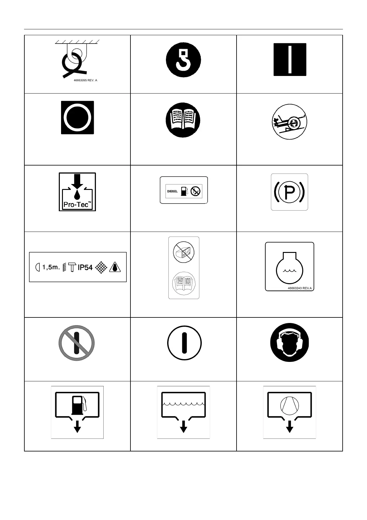 Lashing point (Tie down). Lifting point. On (power).