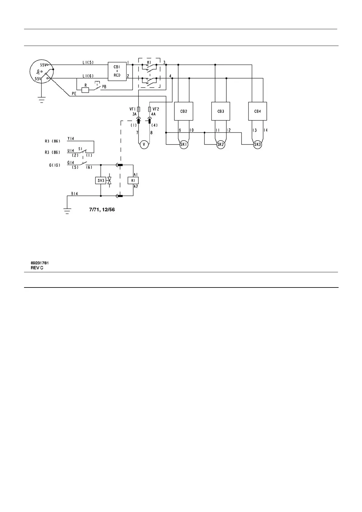 A.C. Electrical Power Schematic Diagram. 115V 1 phase.
