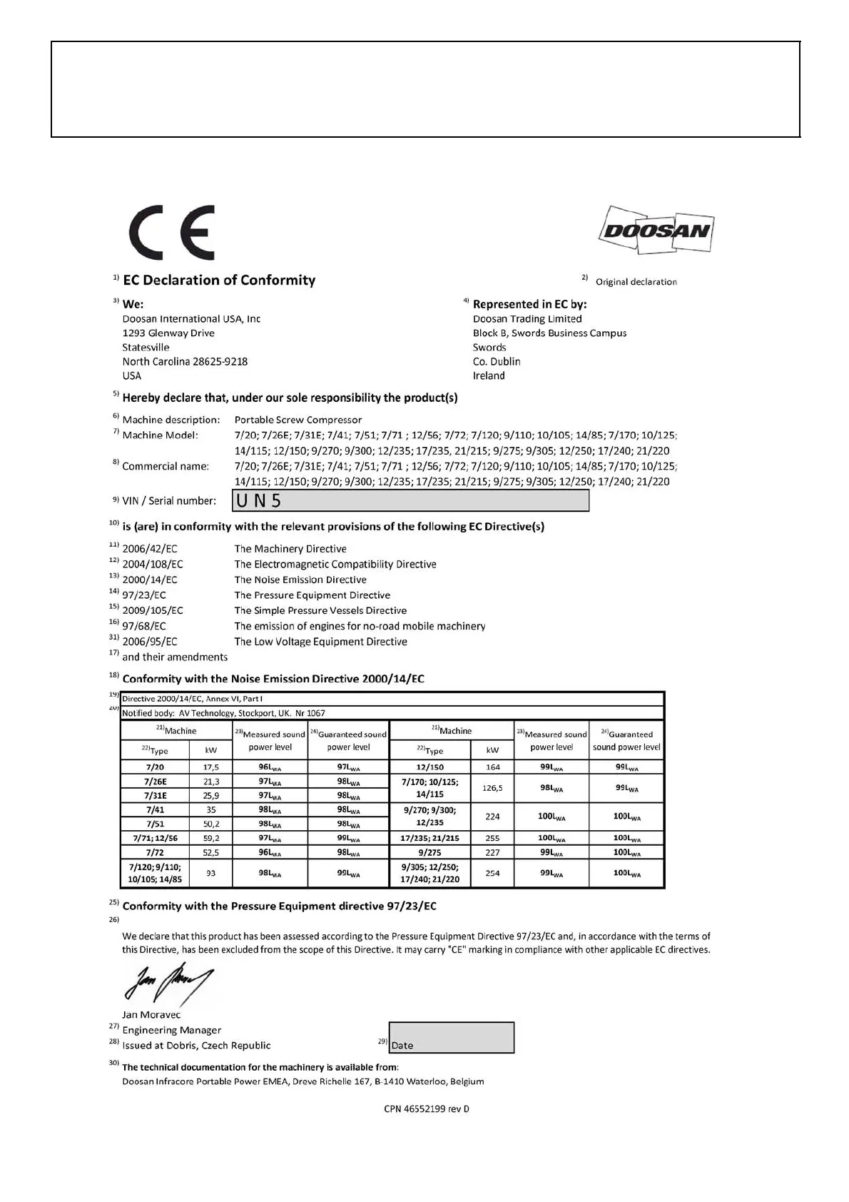 such cases, the design specification of this machine has been certified as complying with EC directives. Any