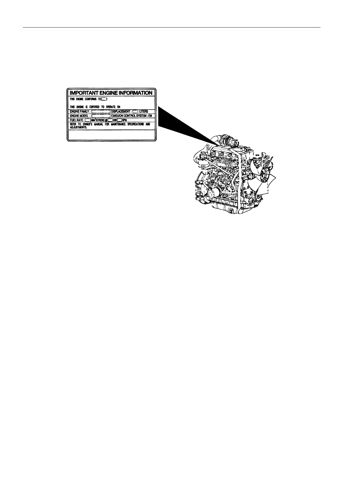 The location of emission control label attached on the engine may vary depending on the engine specification