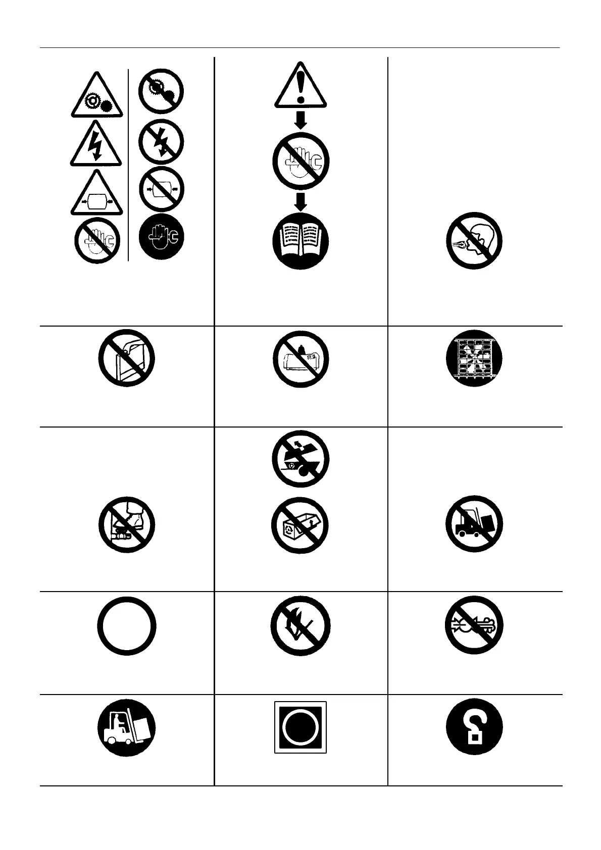 Use fork lift truck from this side only. Emergency stop. Tie down point