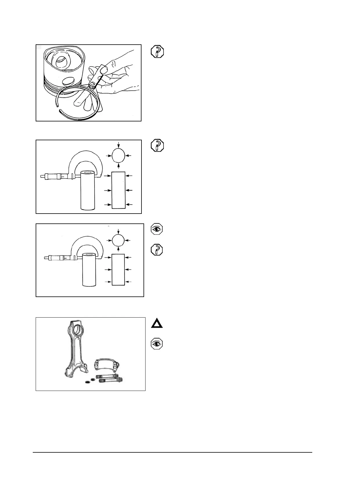 Inspect the piston pin for nicks, gouges and excessive