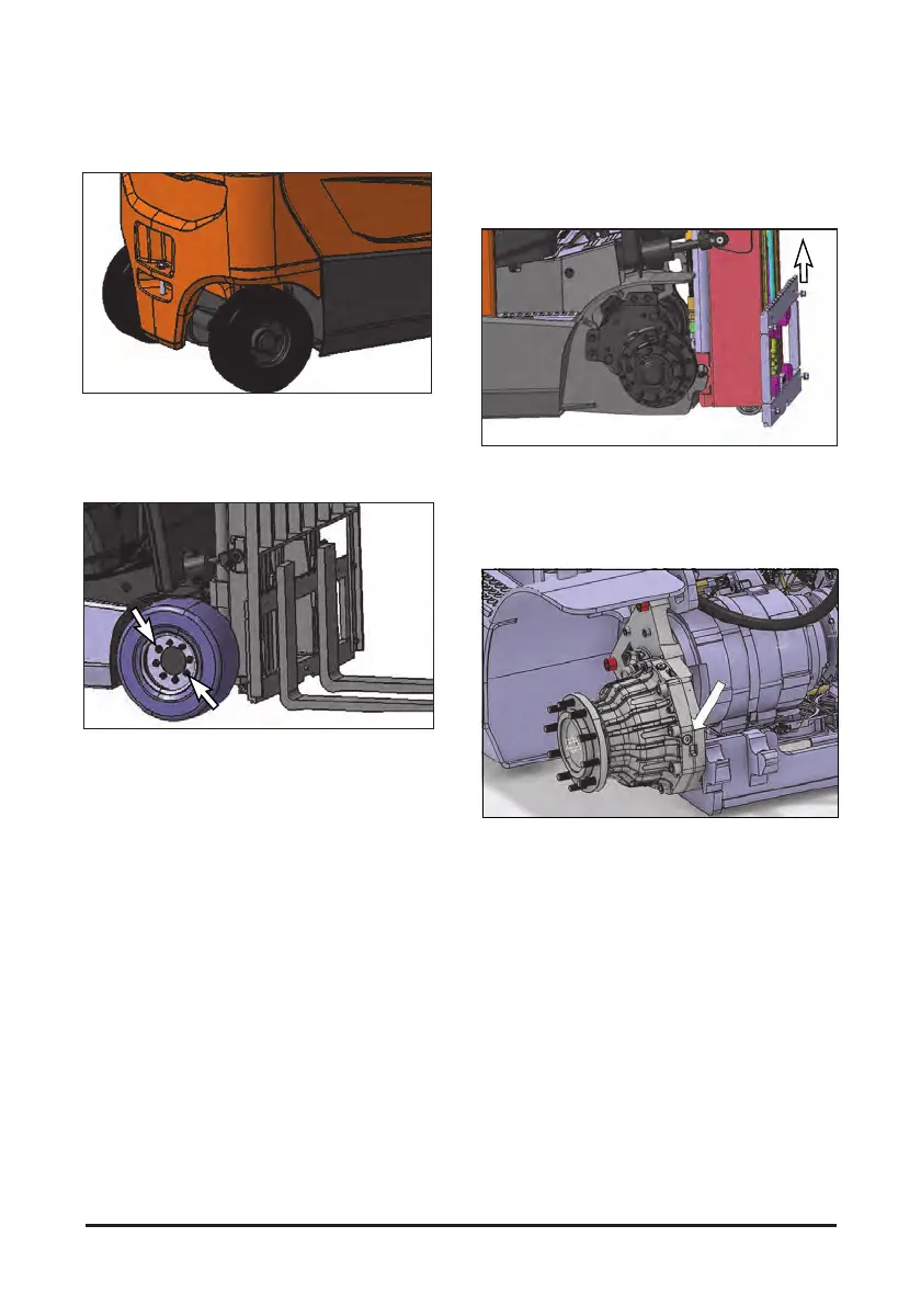 1. Park the lift truck on a level surface. Raise the