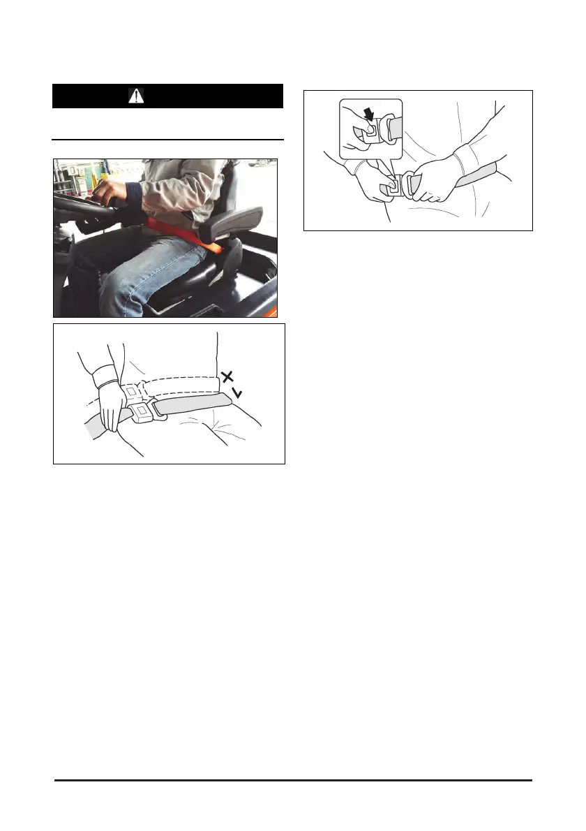 Push the button of the buckle to release the belt.