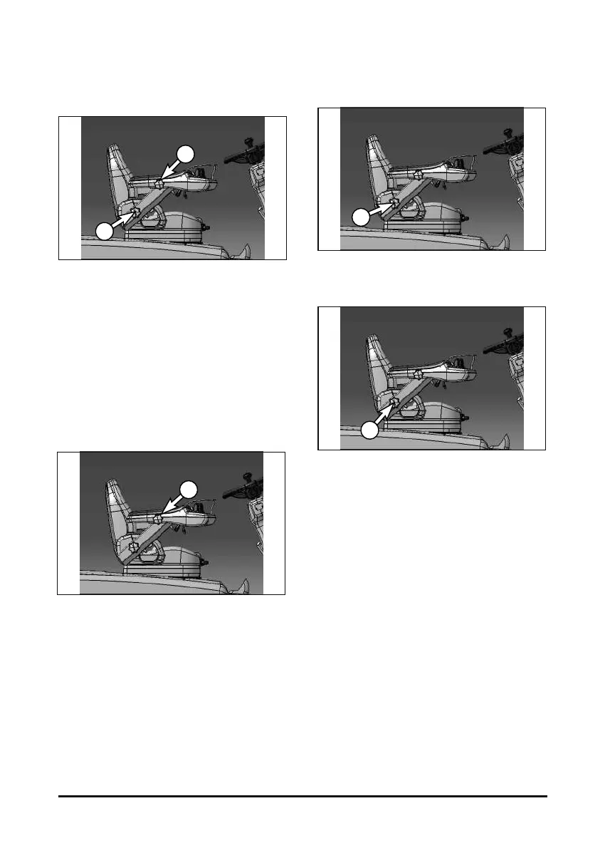 To move the armrest up, turn the knob(2) clockwise.