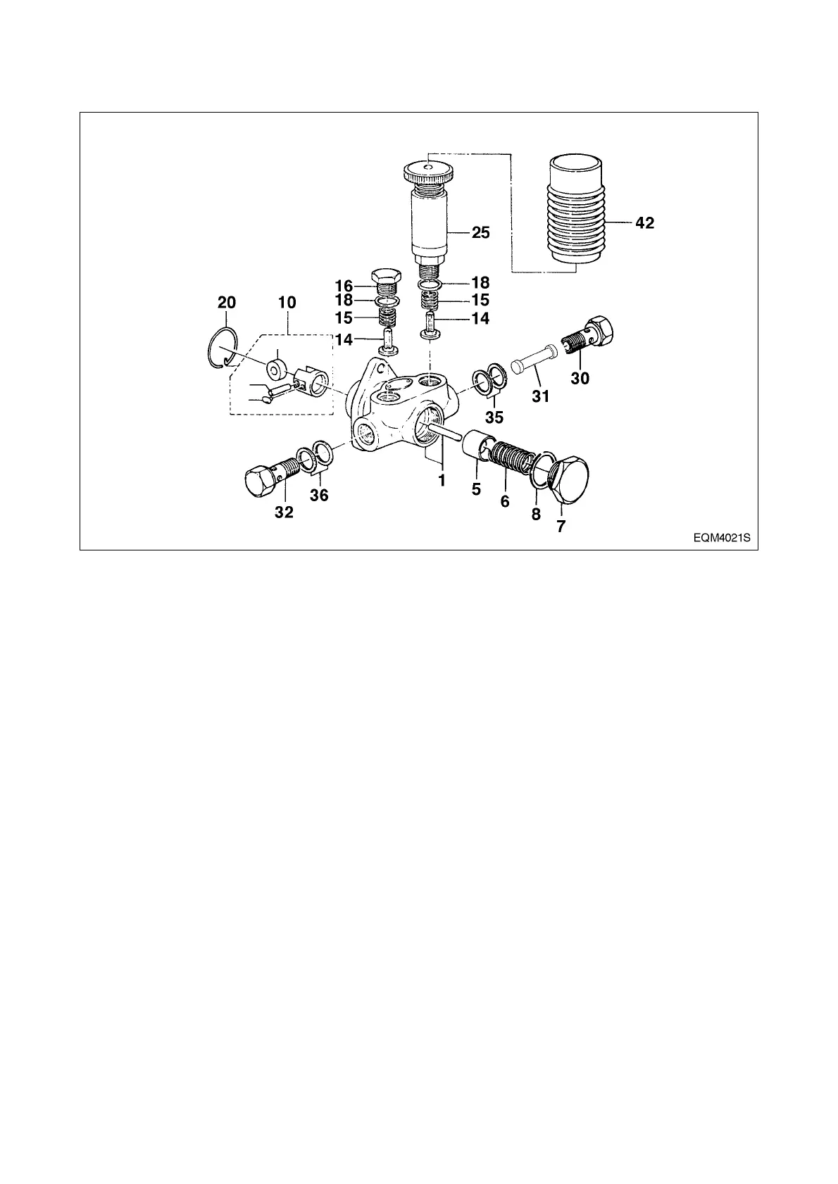 Take off the priming pump (25), plug (16), both gaskets (18), spring (15), and check valve (14).