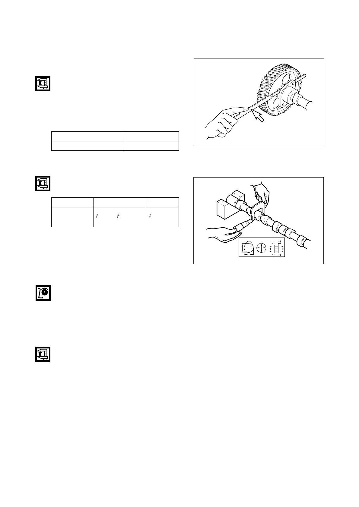 - Measure the inside diameter of the camshaft bushing on the cylinder block using a cylin-