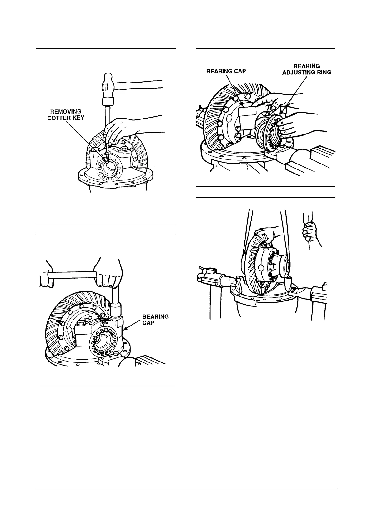 7. Remove the bearing caps and bearing adjusting