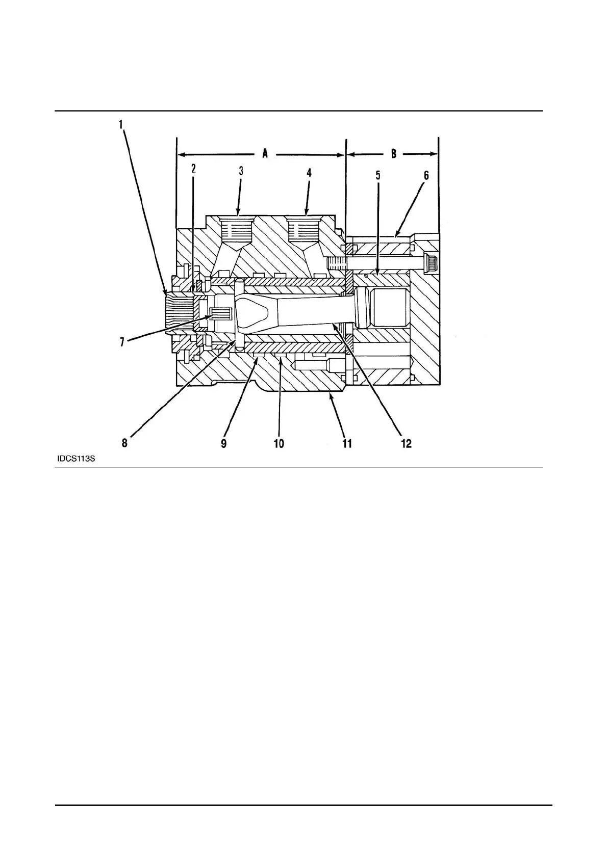 Pin. (9) Left turn port. (10) Right turn port. (11) Body. (12) Drive. (A) Control section. (B) Metering section.