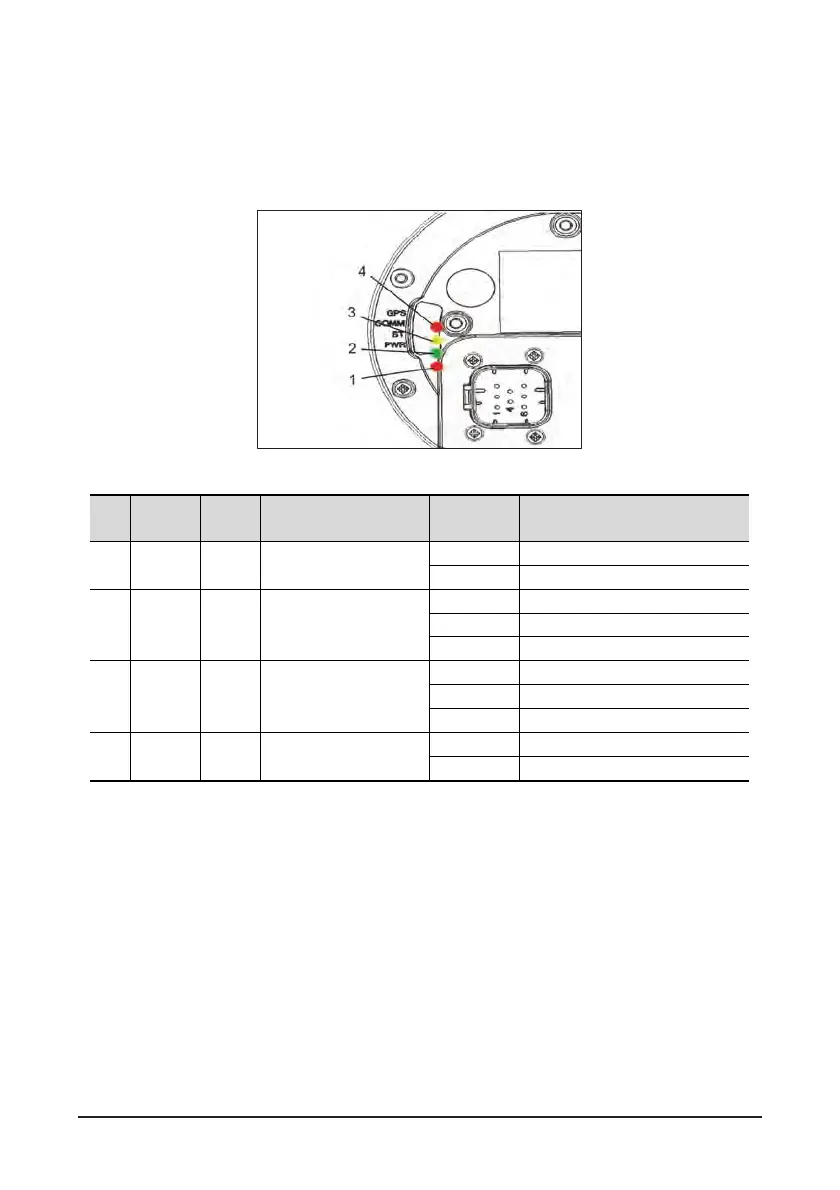 There are four LEDs which indicate the status of the terminal with colors as shown in the table below.