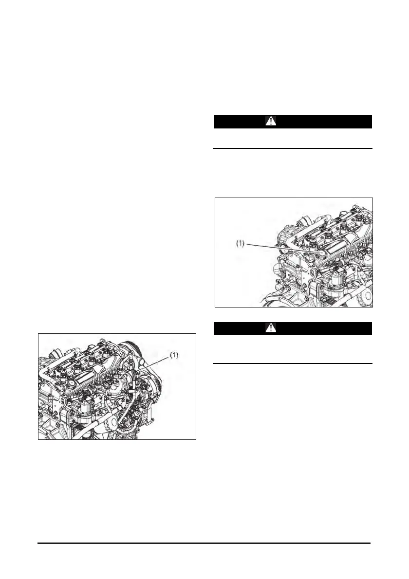 Close the oil refill cap (1) on the engine top.