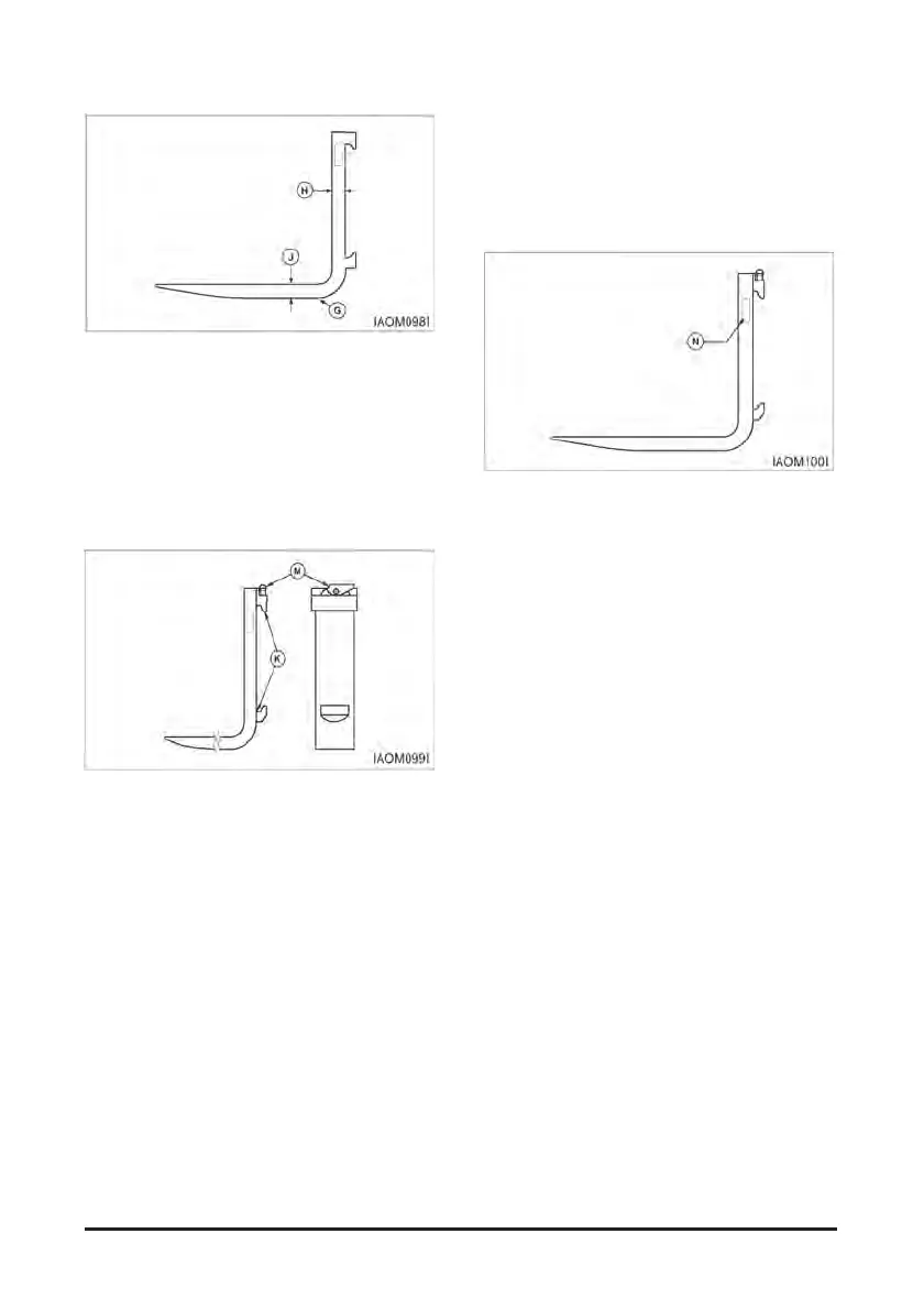 5. Check the fork blade (J) and shank (H) for wear