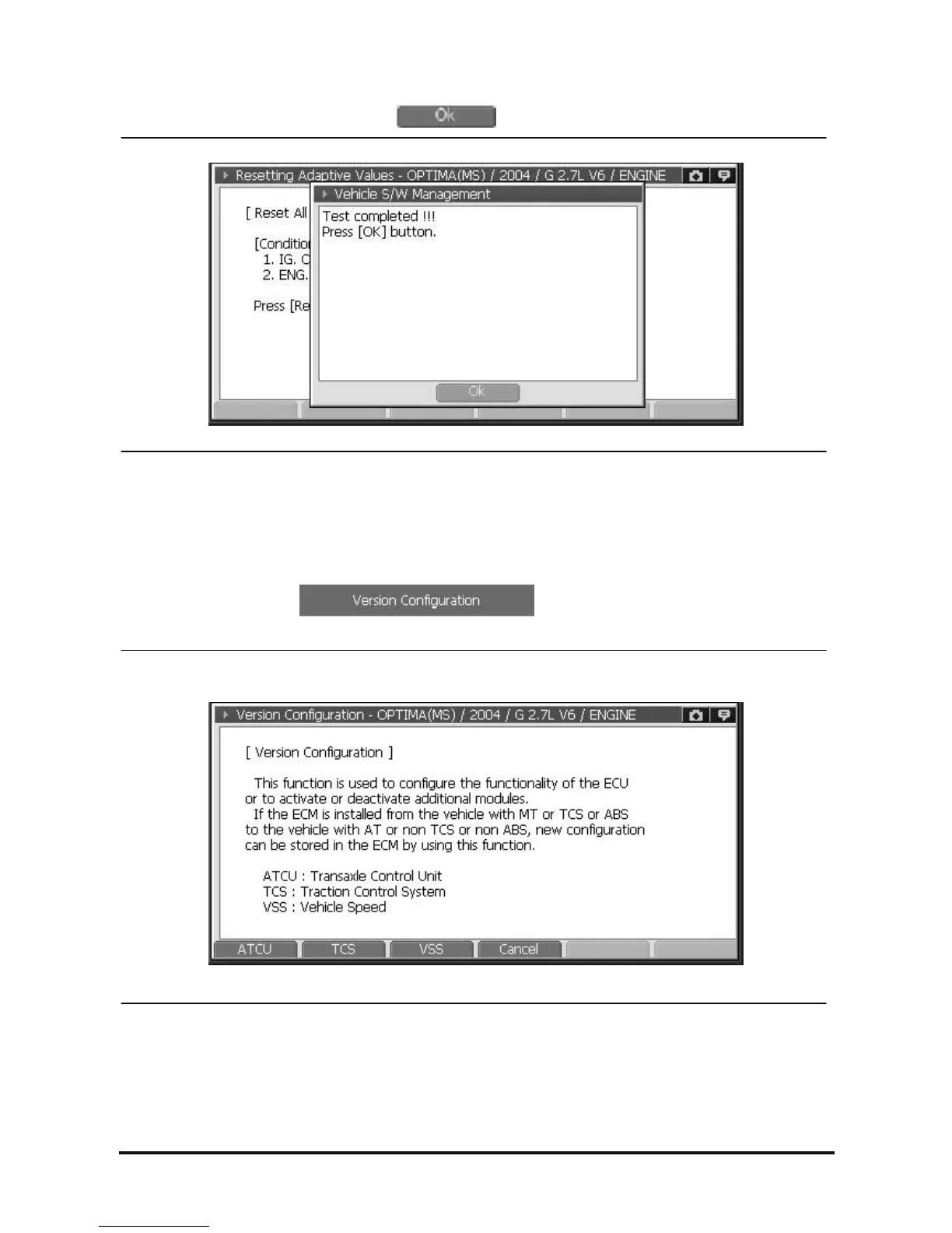 The “Version Configuration” function is used to configure the functionality of the ECU or to activate or