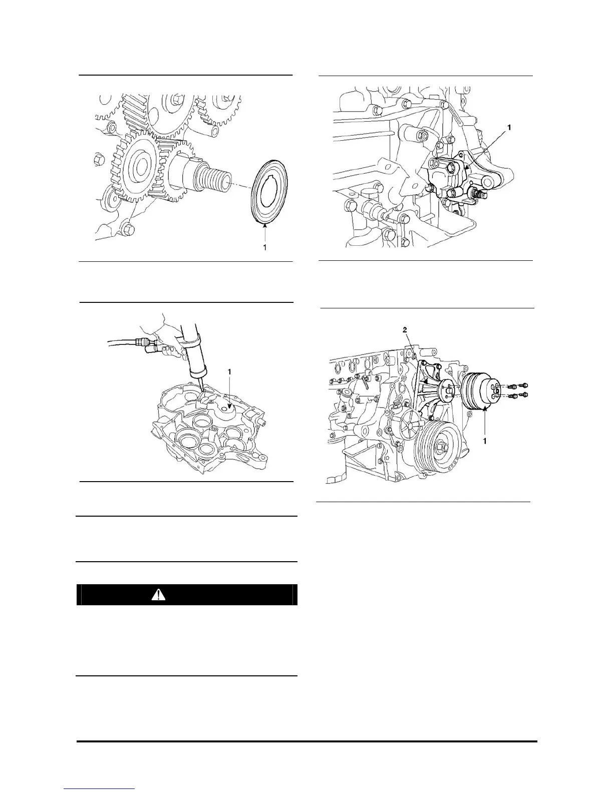 11. Install the water pump pulley (1) and water pump