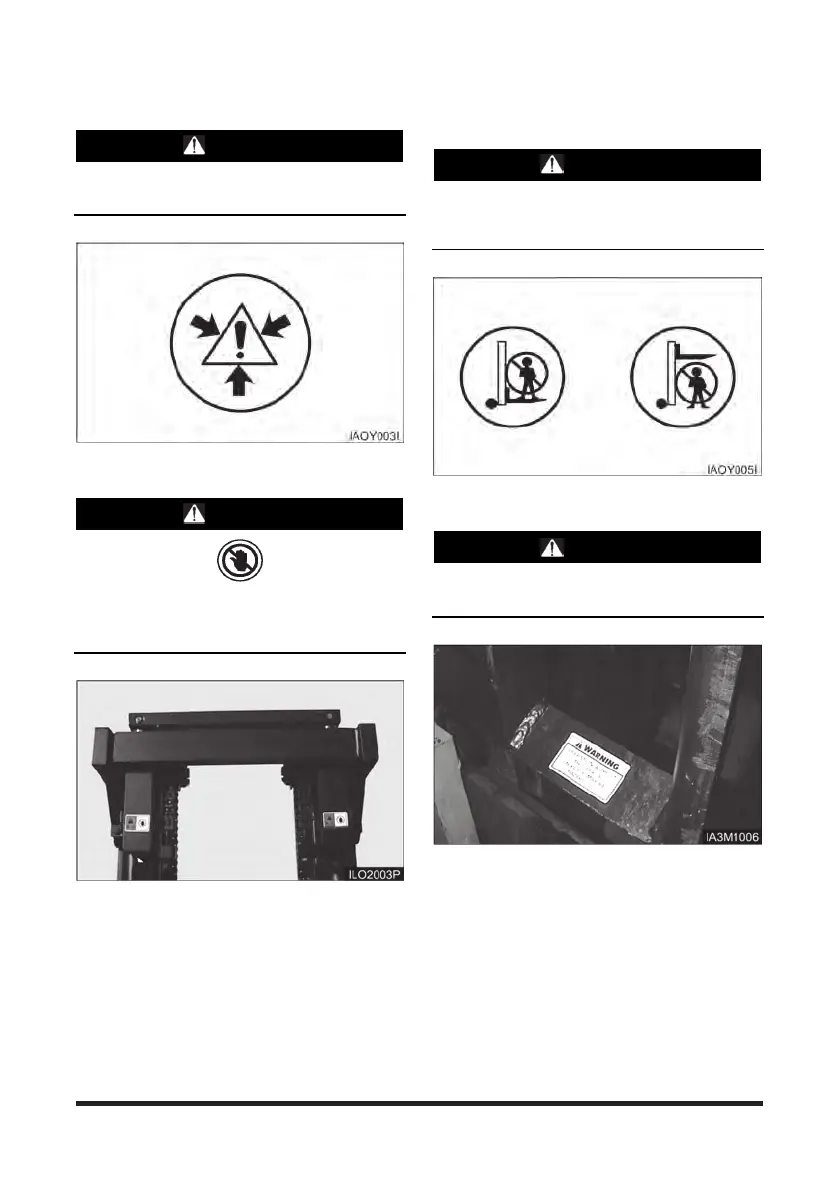 on a load or pallet on the forks. Do not stand or walk