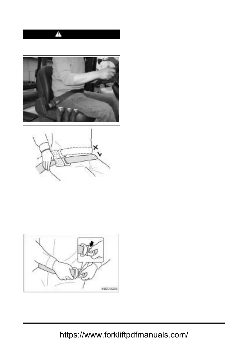 Push the button of the buckle to release the belt. The