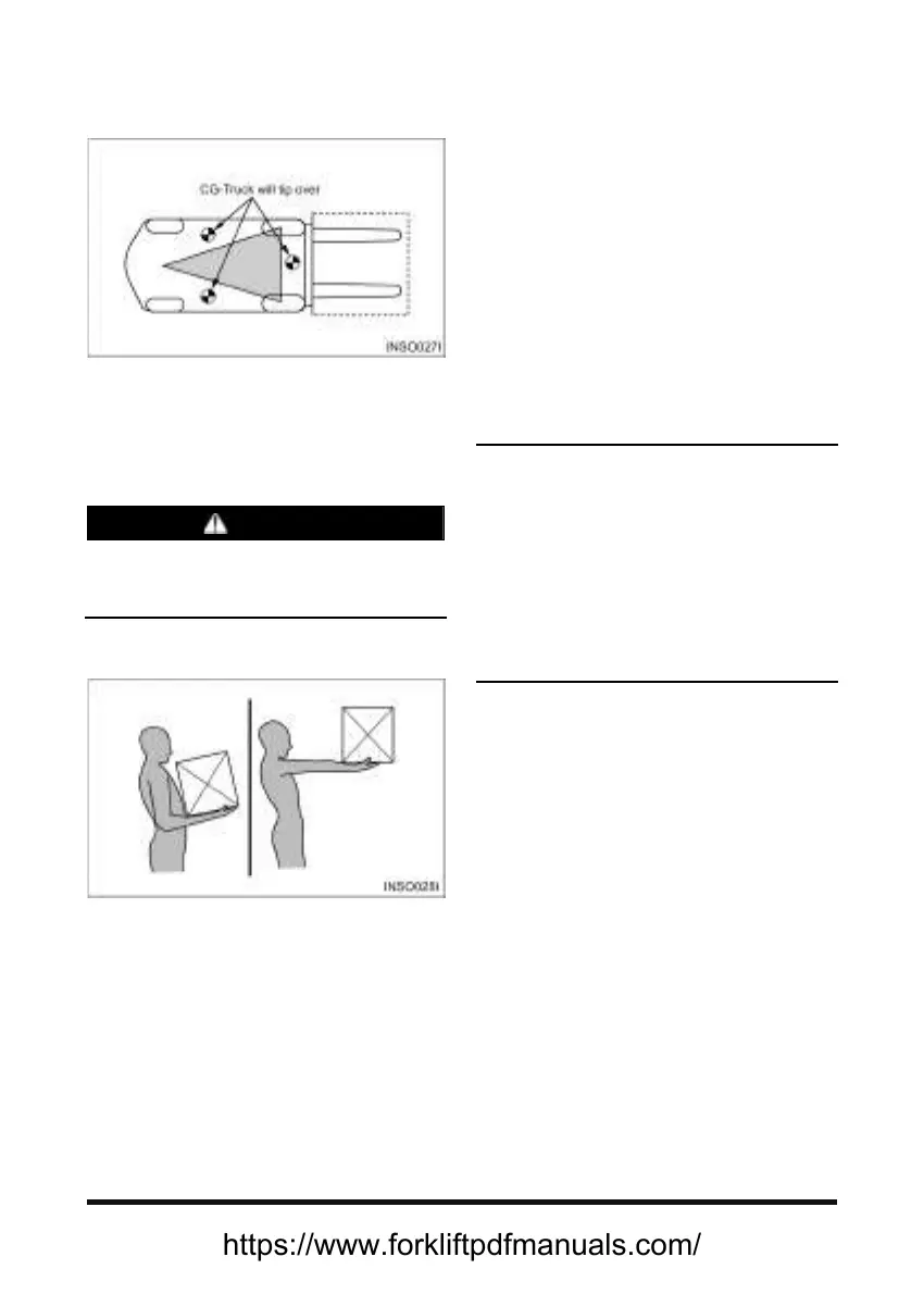 side of the stability base, the lift truck will tip to the side.