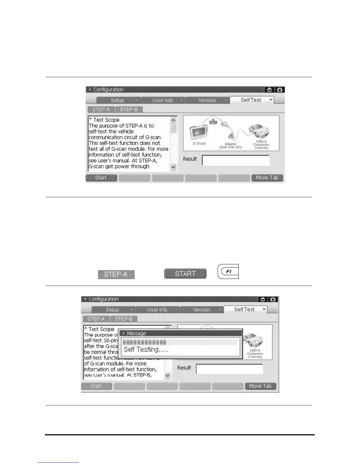 Self Test adapter, refer to the ‘Connecting the Self Test adapter’ in the ‘Basic usage of G-scan’.