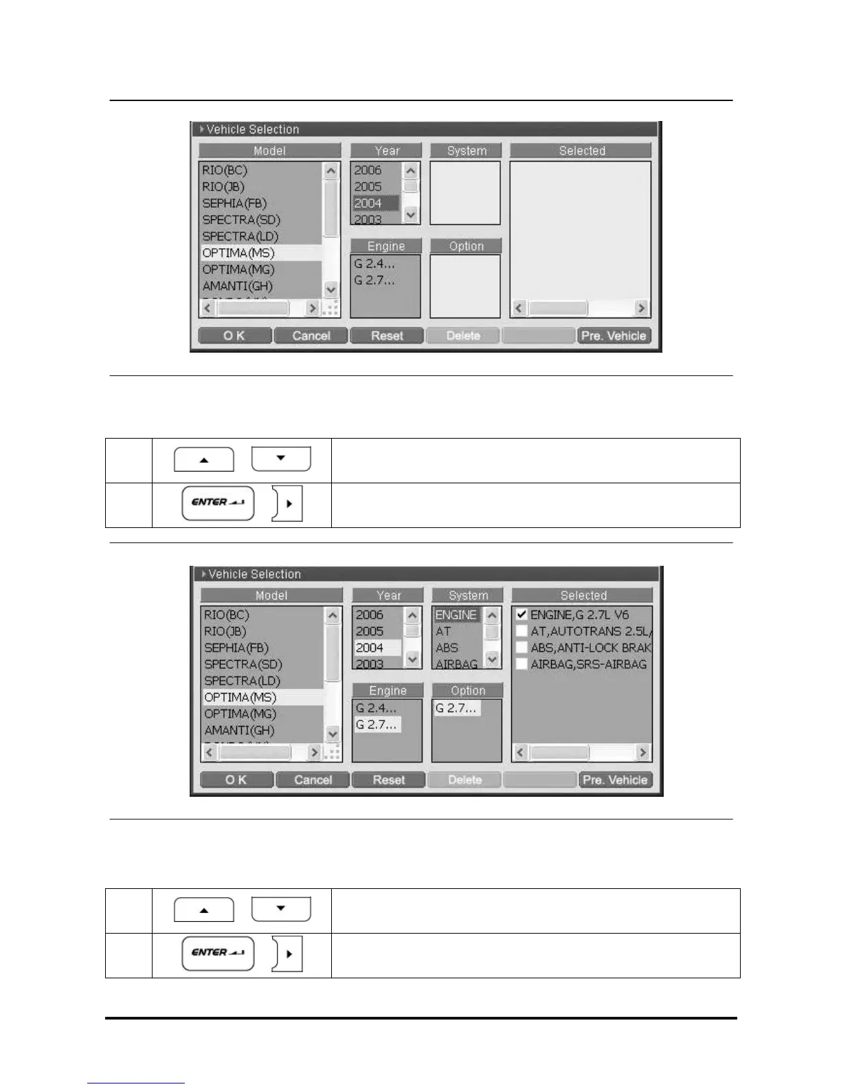 Select the year of model to be diagnosed. Move to “Engine” zone.