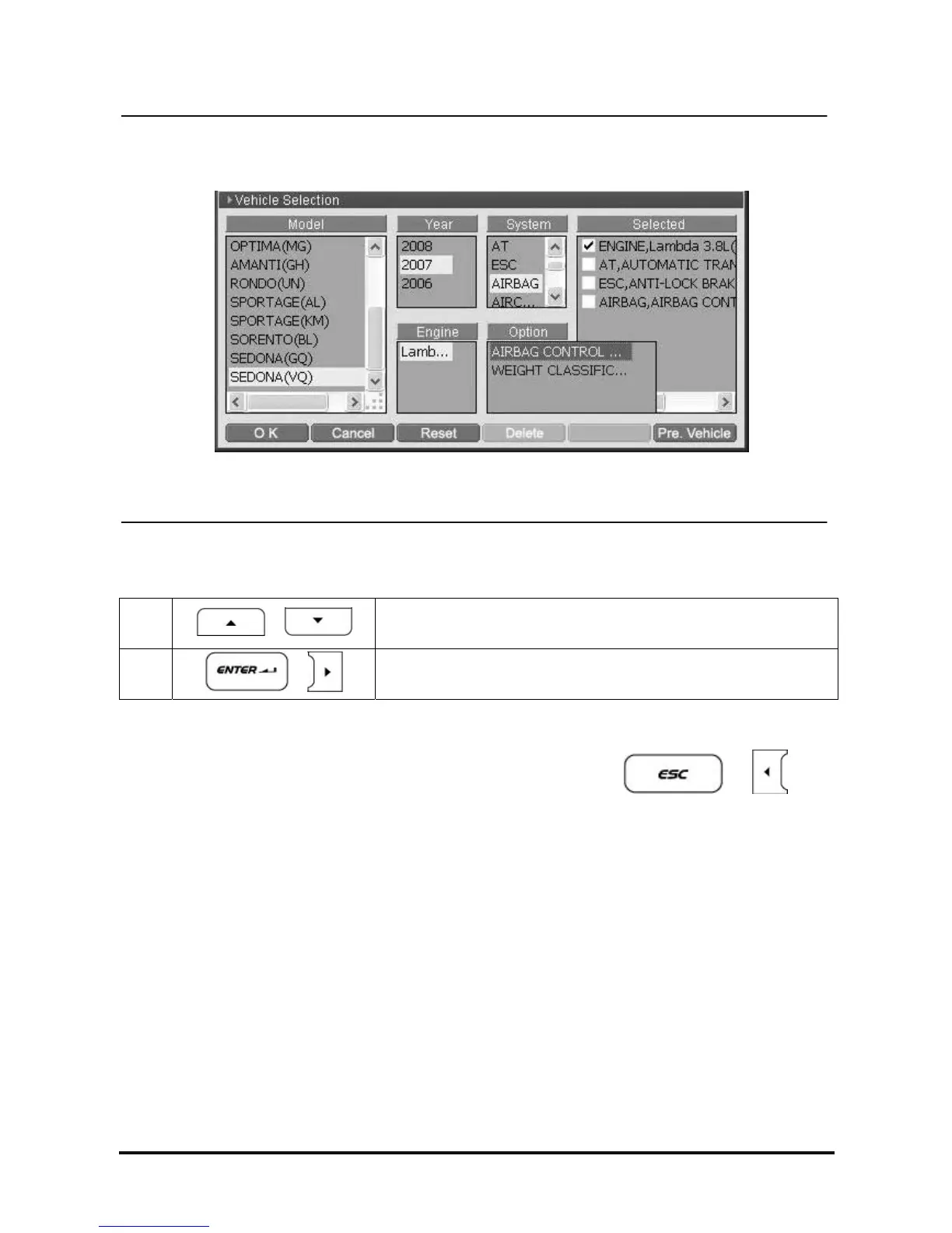 NOTE : During selecting system, when it moves to upper zone than “System” zone (“Model”, “Year”, “Engine”