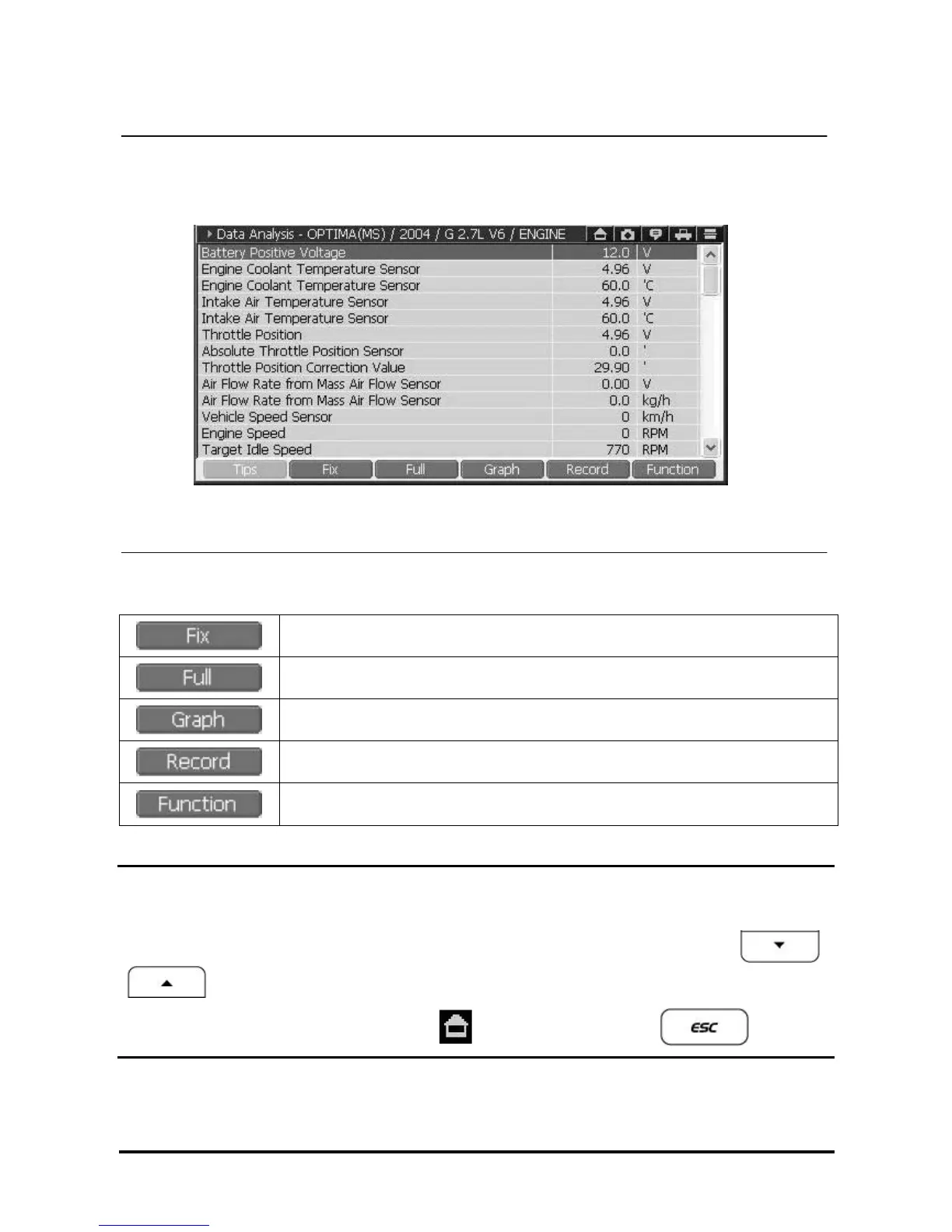 • If the wanted data is not on display, move the scroll bar with the stylus pen or use