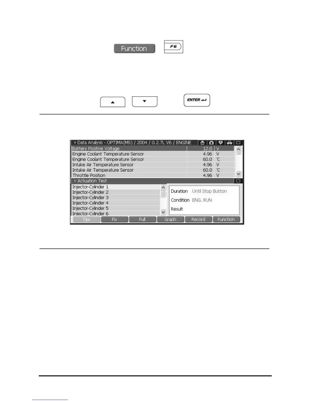 2. On the function menu, select “Actuation Test”, and screen will be changed to Dual mode as shown in