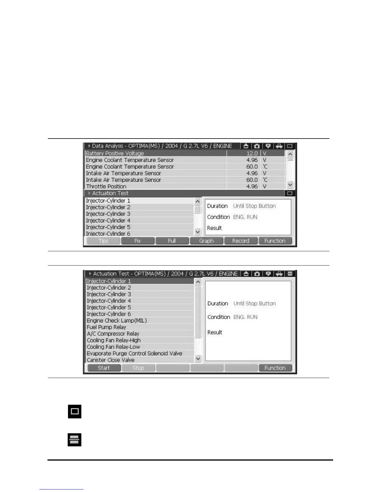 → “Data Analysis” and "Actuation Test" will be displayed on dual mode.