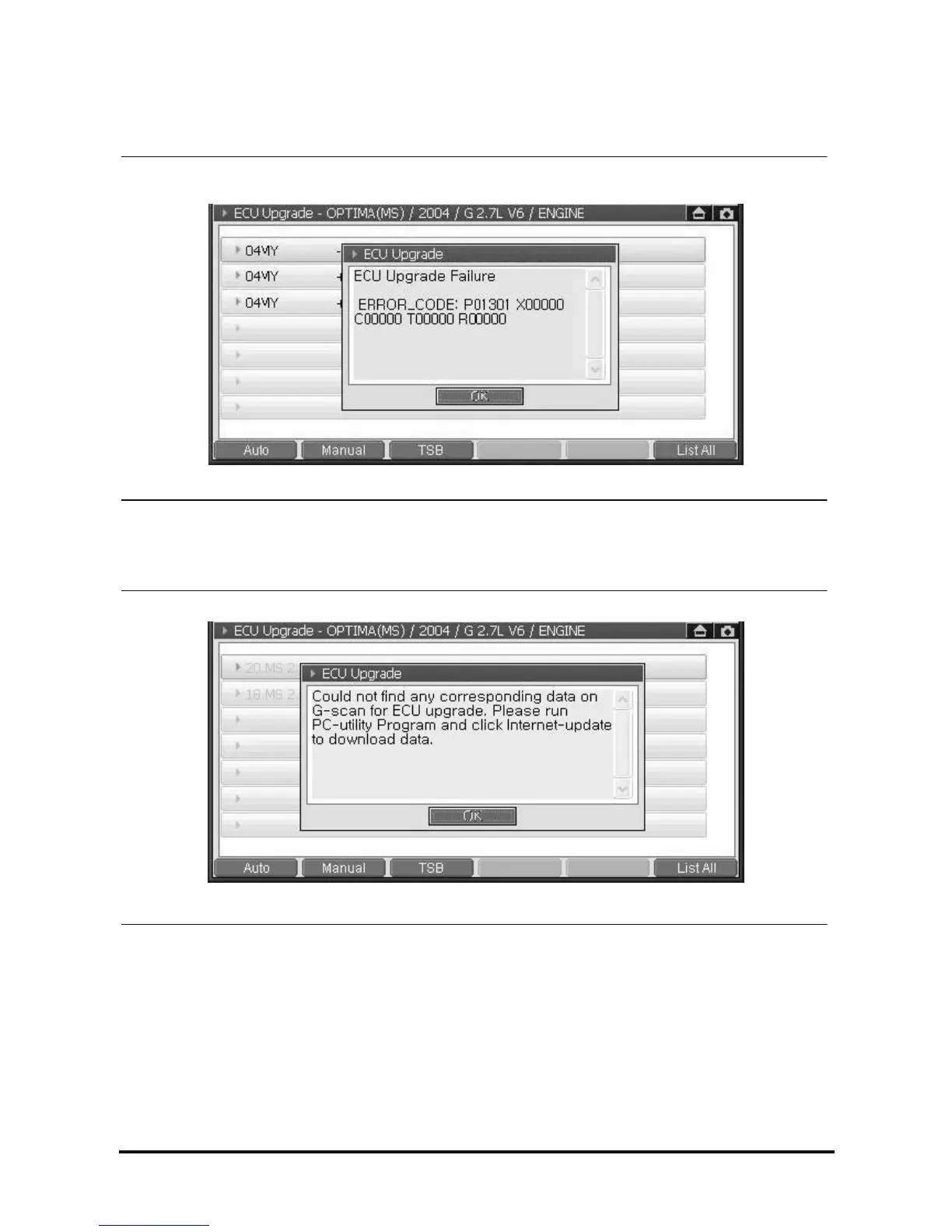 < Could not find any corresponding data on G-scan for ECU upgrade. Please run PC-utility program