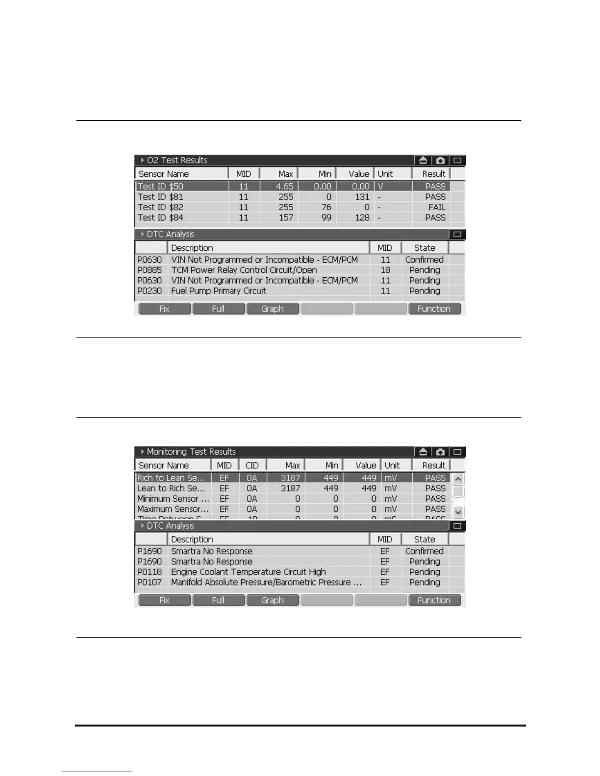 The results of the on board oxygen sensor monitoring test can be displayed in this mode. Note that only items