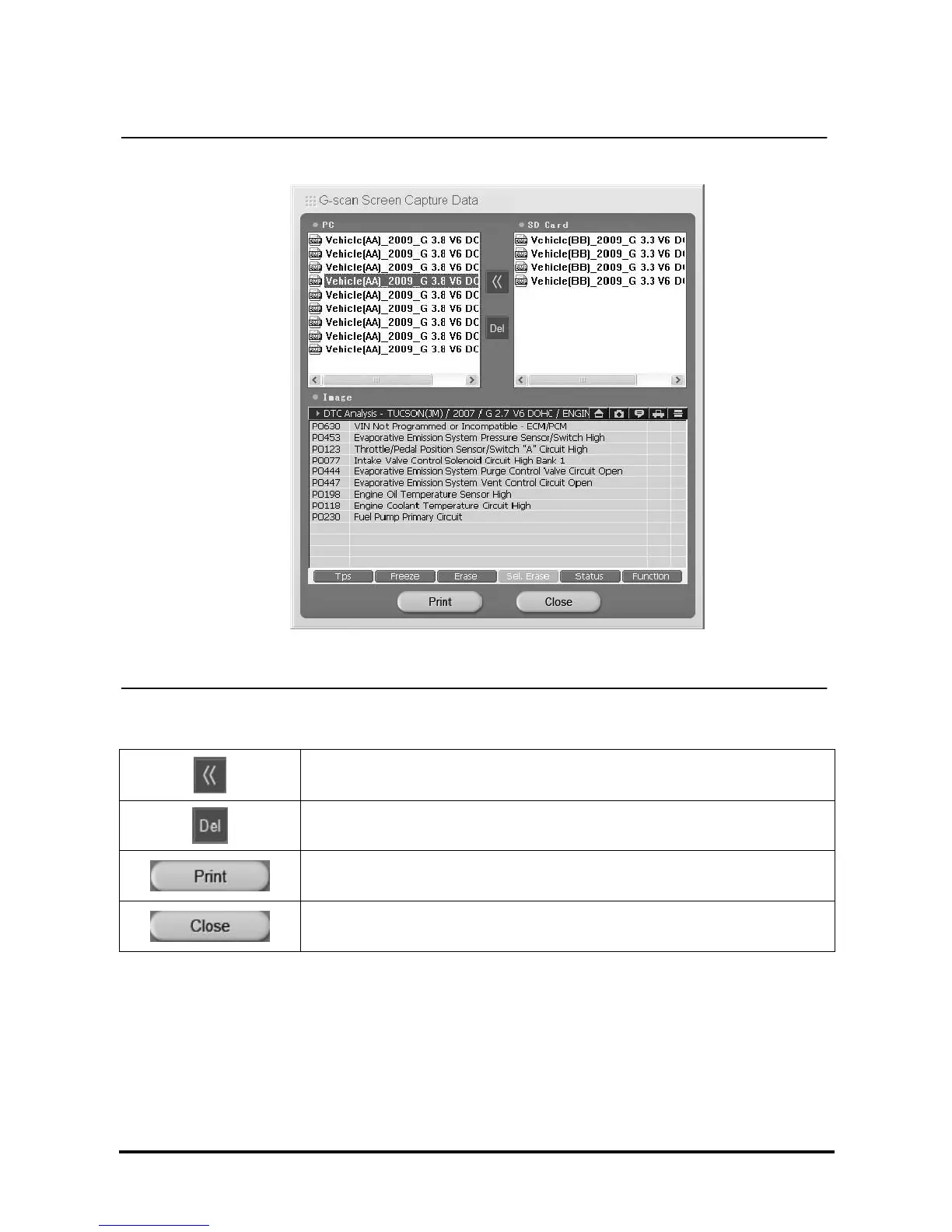 Deletes the selected file from the PC or SD memory card.