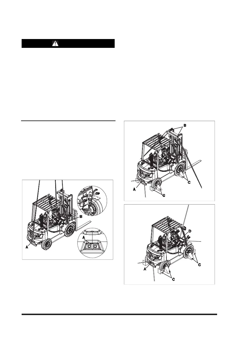 5. Apply the parking brake. Stop the tires with blocks (C).